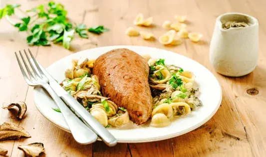 Filet mignon de dinde, sauce aux cèpes et orecchiettes