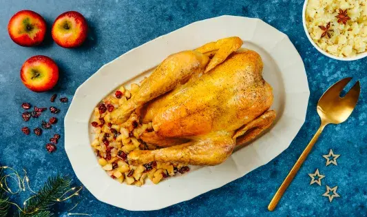 Poularde farcie au riz sauvage, noisettes et cranberries