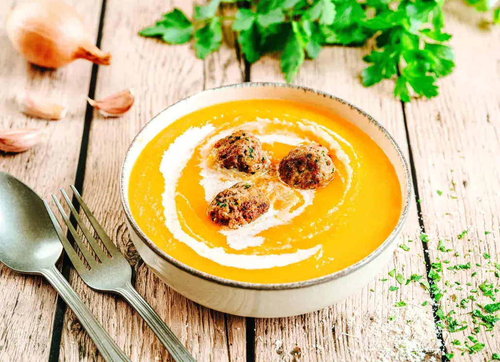 La tendresse des boulettes de dinde rencontre la douceur du velouté de butternut.