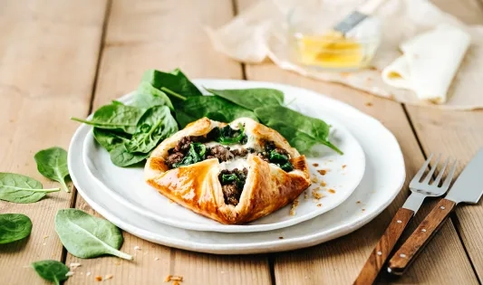 Feuilleté à la viande hachée, épinards et mozzarella