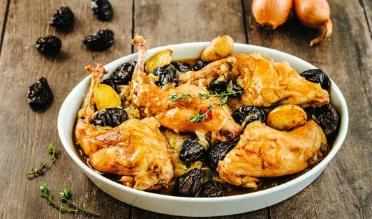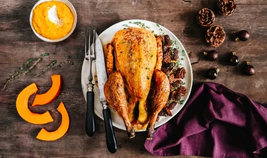 Chapon aux épices, potimarron et fruits secs