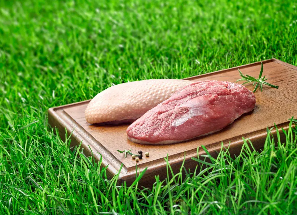 Nos canards bénéficient de plus d'espace pour courir et s'ébattre. Ils profitent également d'un aménagement des poulaillers avec des objets d'interaction et des pipettes têtes plongeantes pour leur permettre d'exprimer leur comportement naturel. Nos canards ne sont pas gavés et ont un libre accès la nourriture et l'eau.